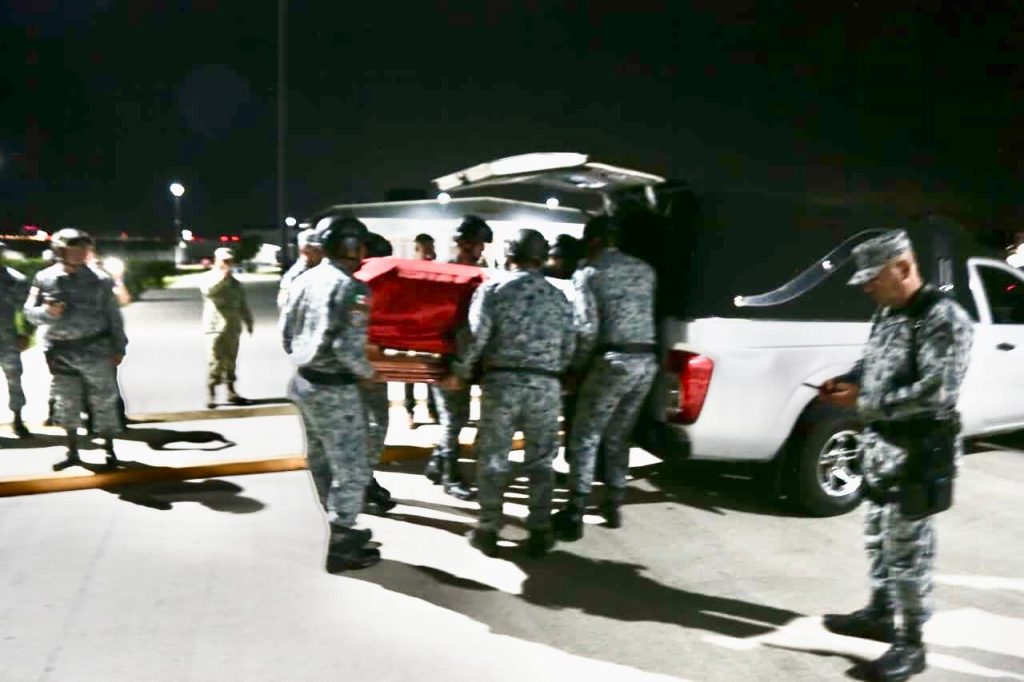 Los féretros arribaron alrededor de las 20:00 horas, donde fueron recibidos con honores por el General Brigadier de la Guardia Nacional, Agustín Reyna Mendoza, comandante del Mando Especial en Acapulco, quien reconoció la entrega, el valor y el amor a la patria de los integrantes caídos.